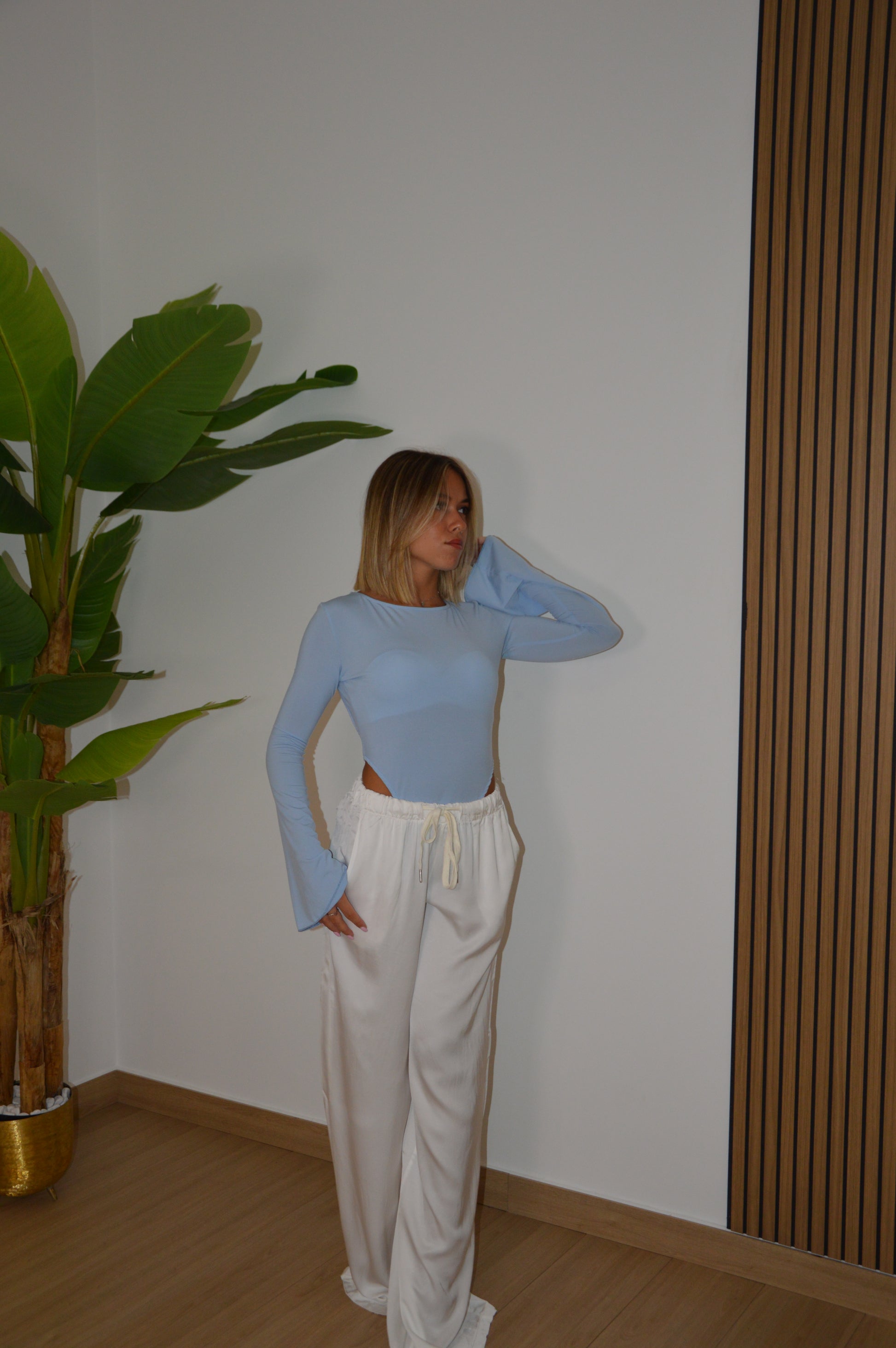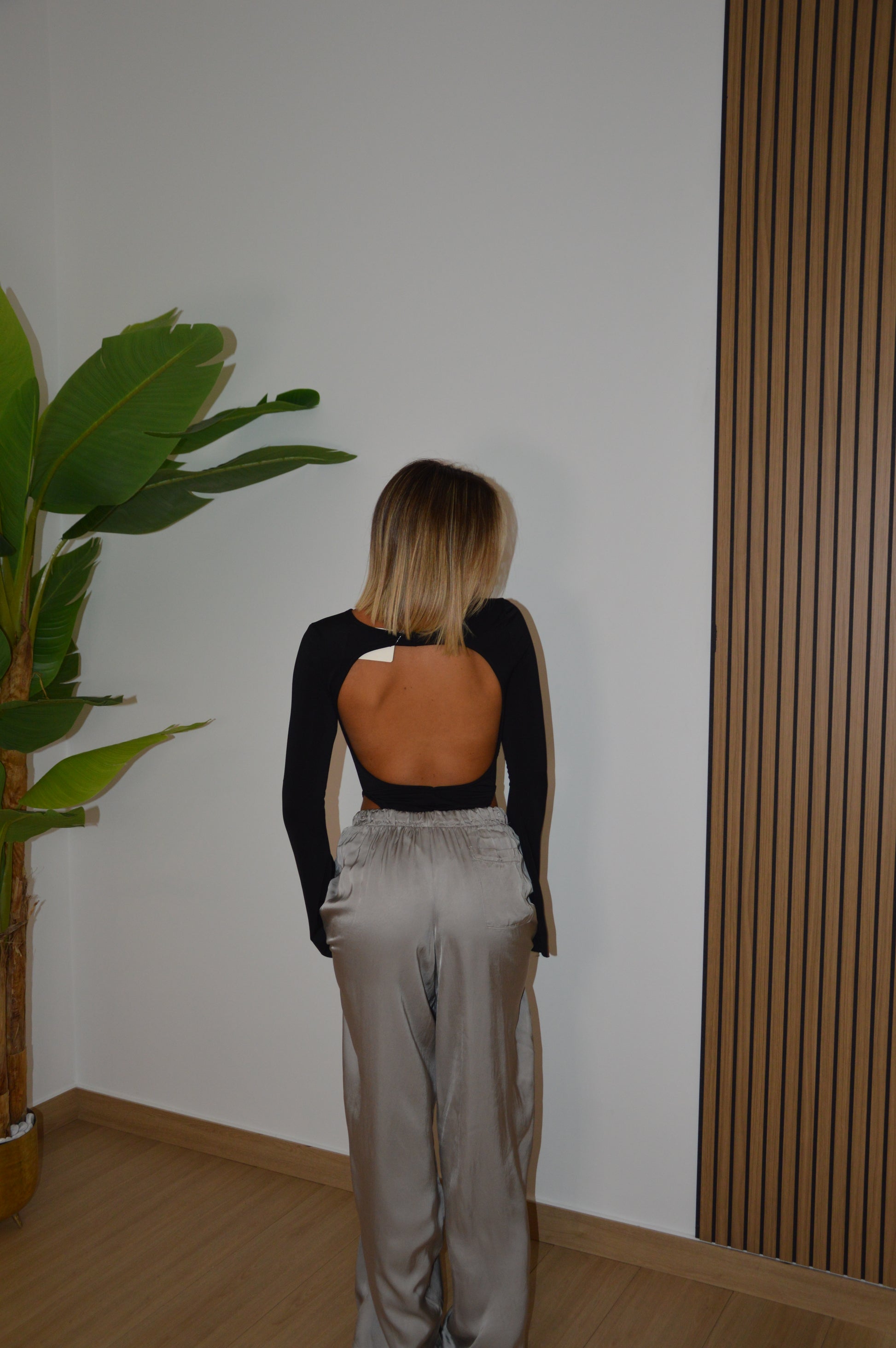 Body con maniche lunghe, schiena scoperta
