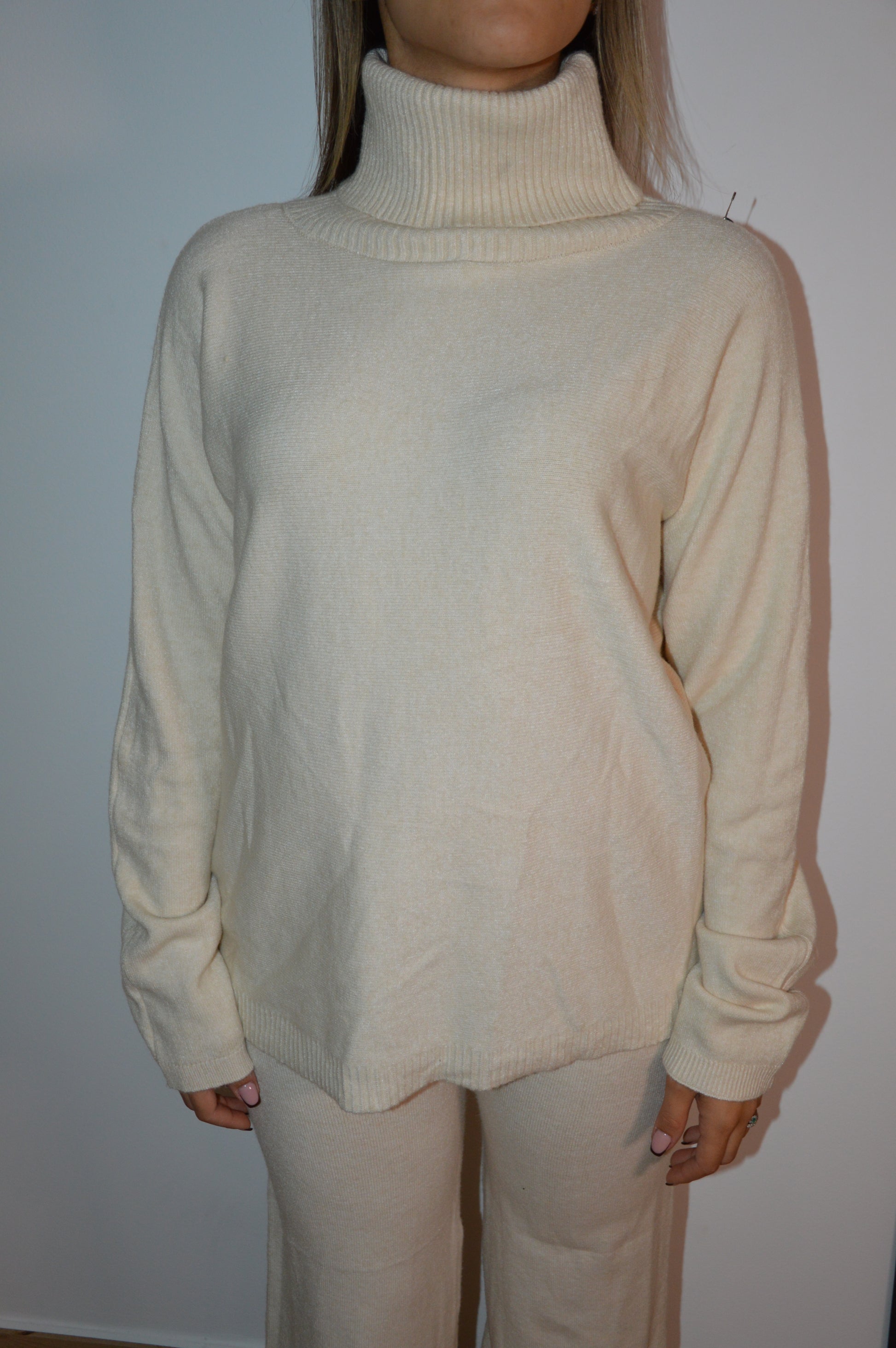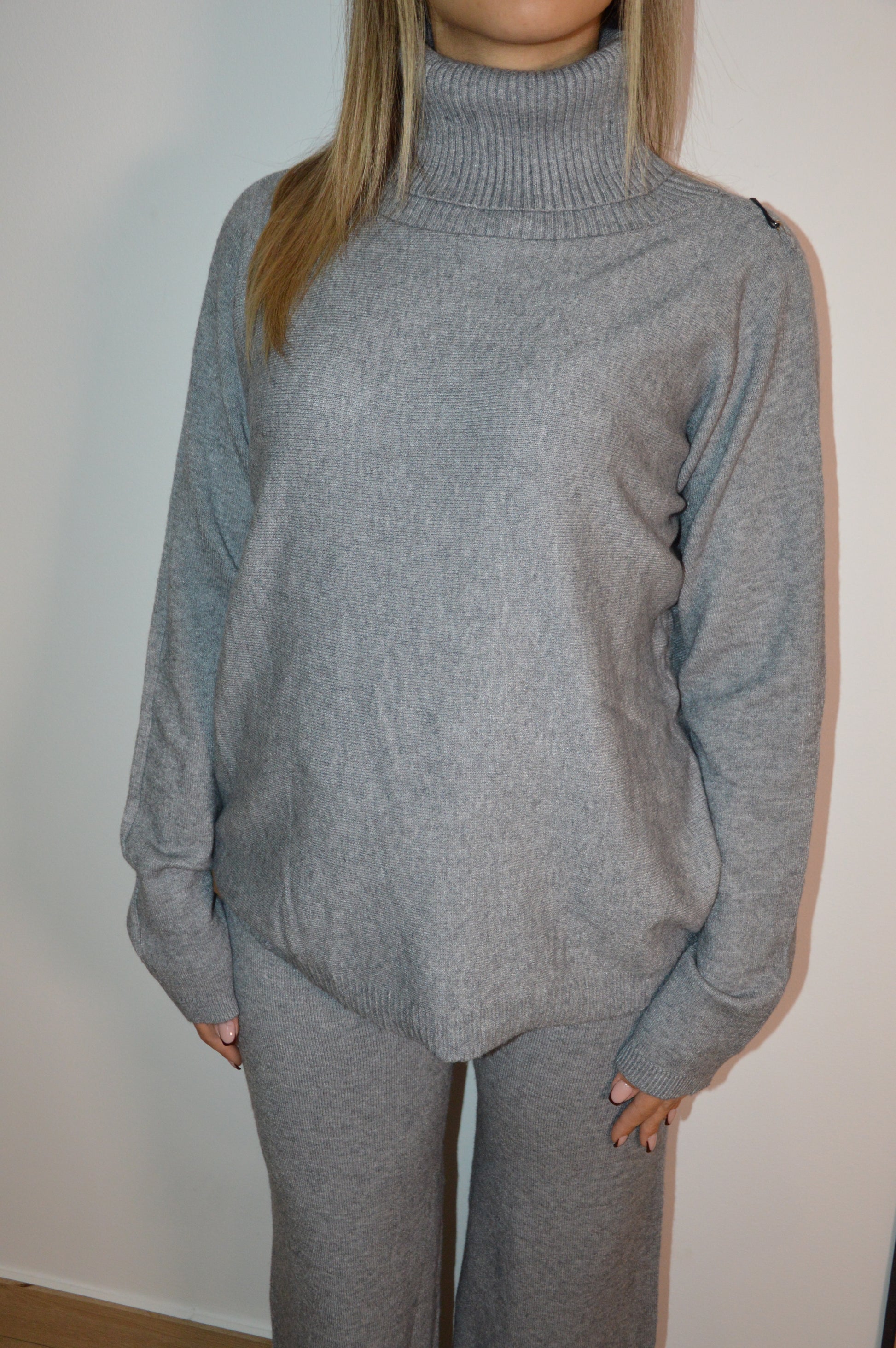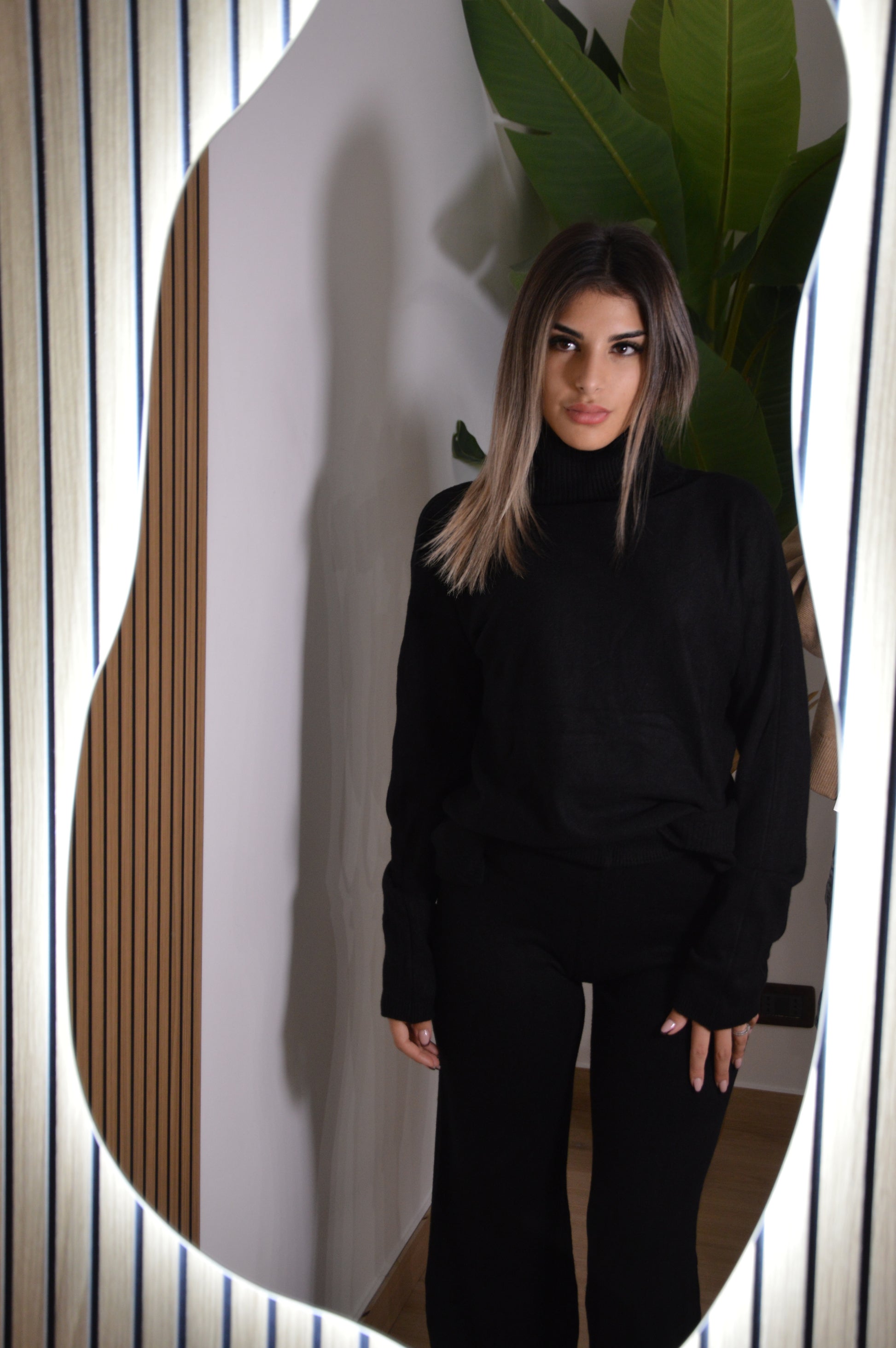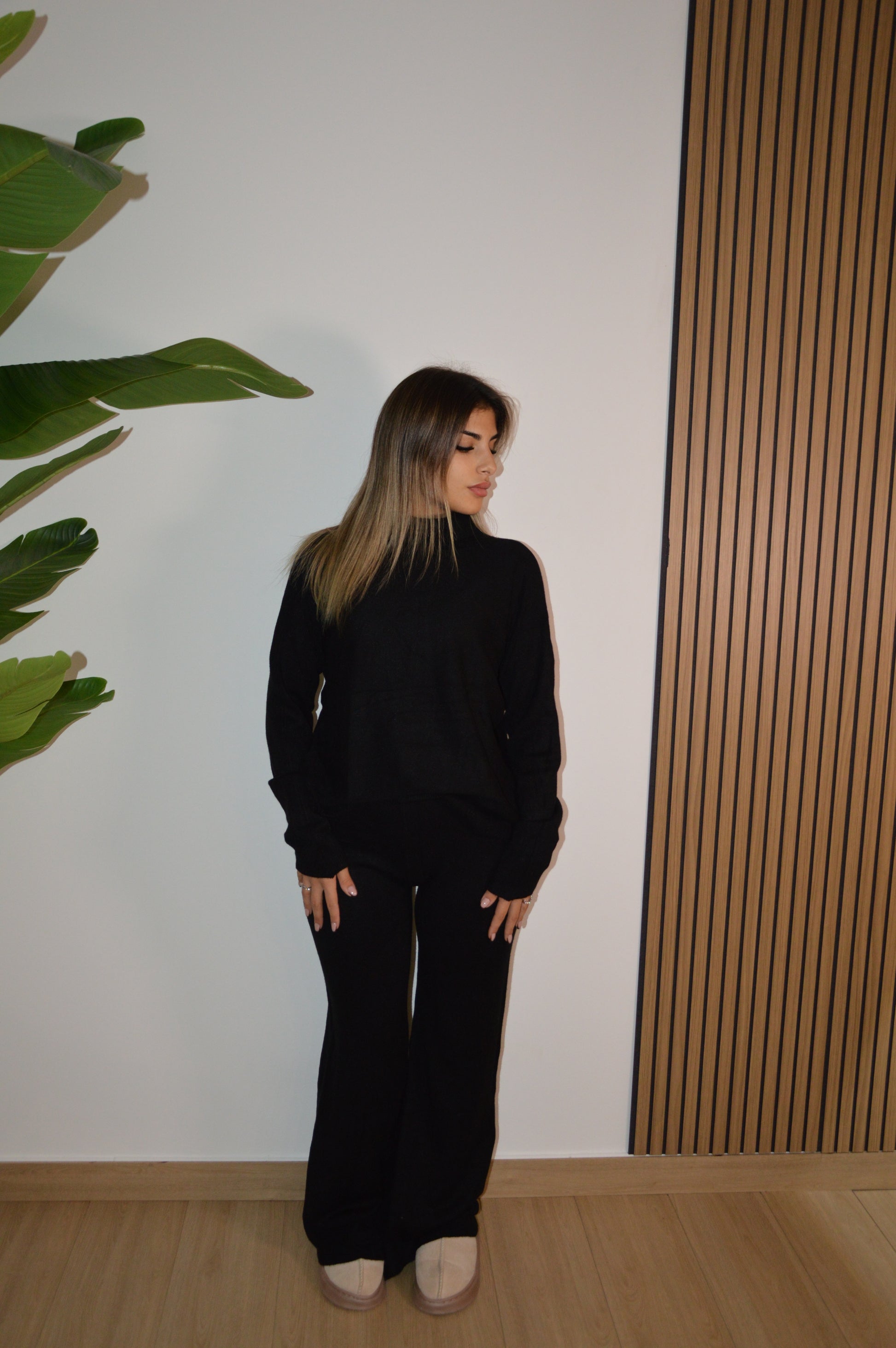 Coordinato composto da maglione con collo alto, pantaloni con elastico in vita