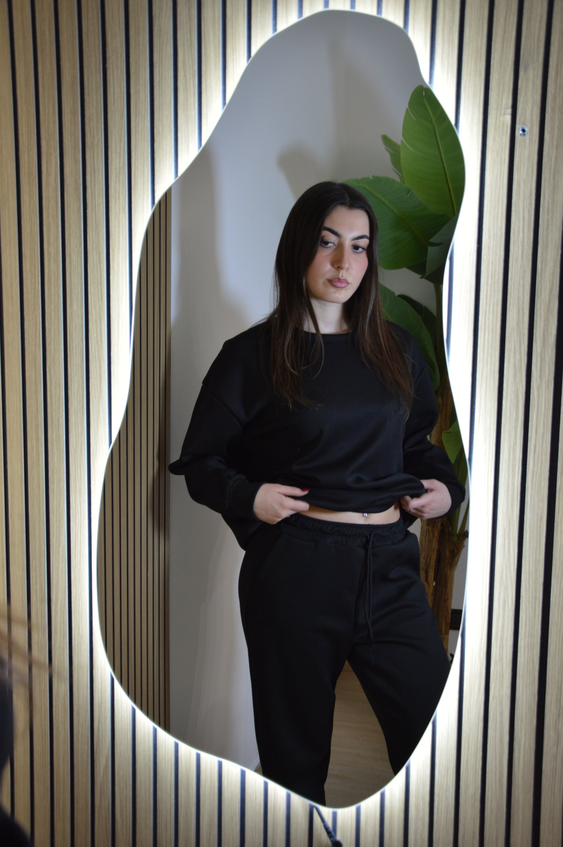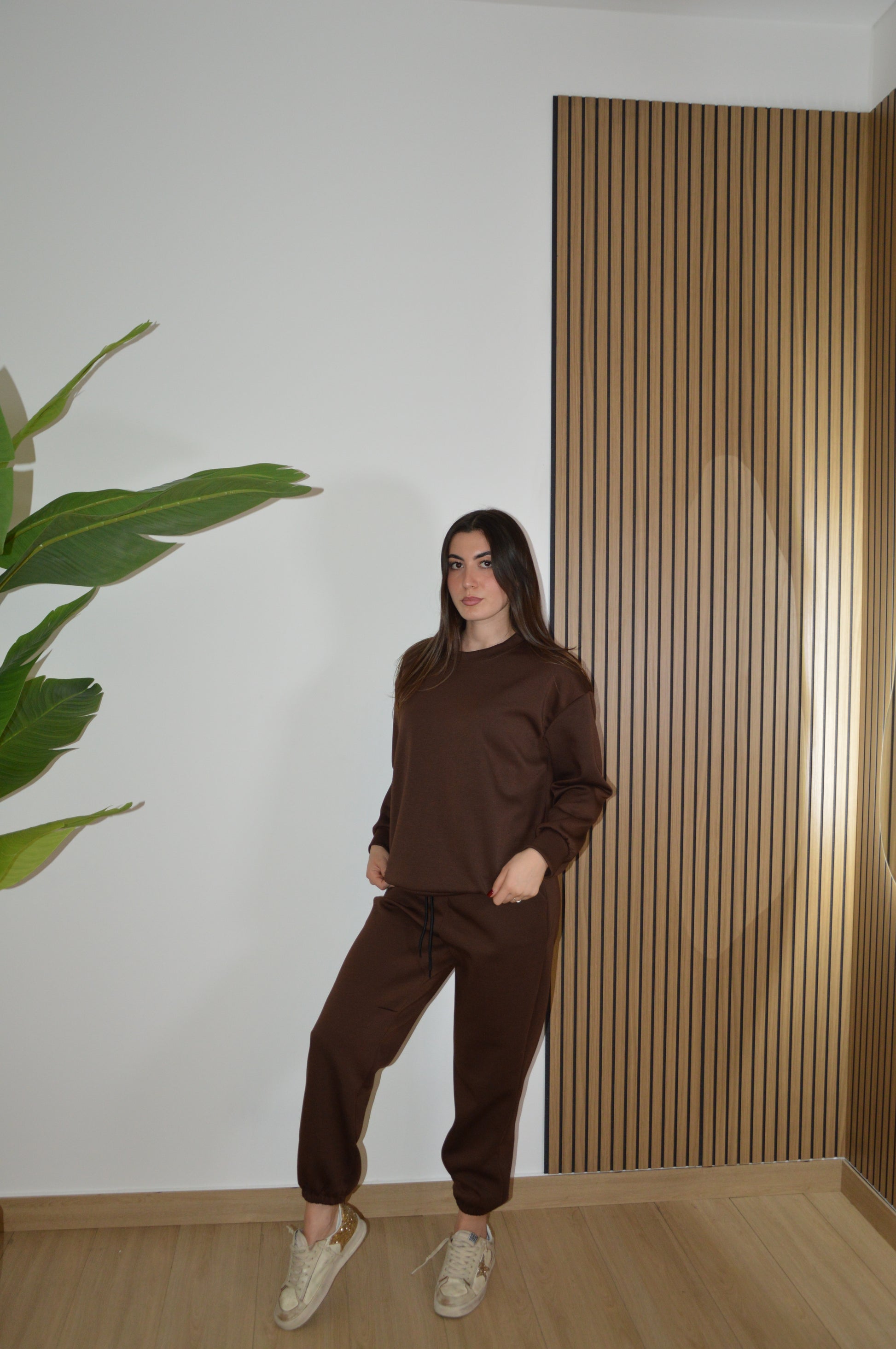 Tuta con felpa over, pantaloni con elastico in vita e polsini